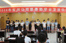 2014年8月22日,虹潤公司一年一度的“圓夢助學(xué)行動(dòng)”捐資助學(xué)儀式在虹潤科技園辦公大樓四樓禮堂隆重舉行。順昌縣委副書記易才卿、順昌縣關(guān)工委主任黃春娣、順昌縣政協(xié)副主席黃為雄、順昌縣文體局局長李元生、團(tuán)縣委書記吳詩源、順昌縣工會副主席蘭榮妹、虹潤公司董事長林善平以及相關(guān)部門領(lǐng)導(dǎo)出席了儀式。