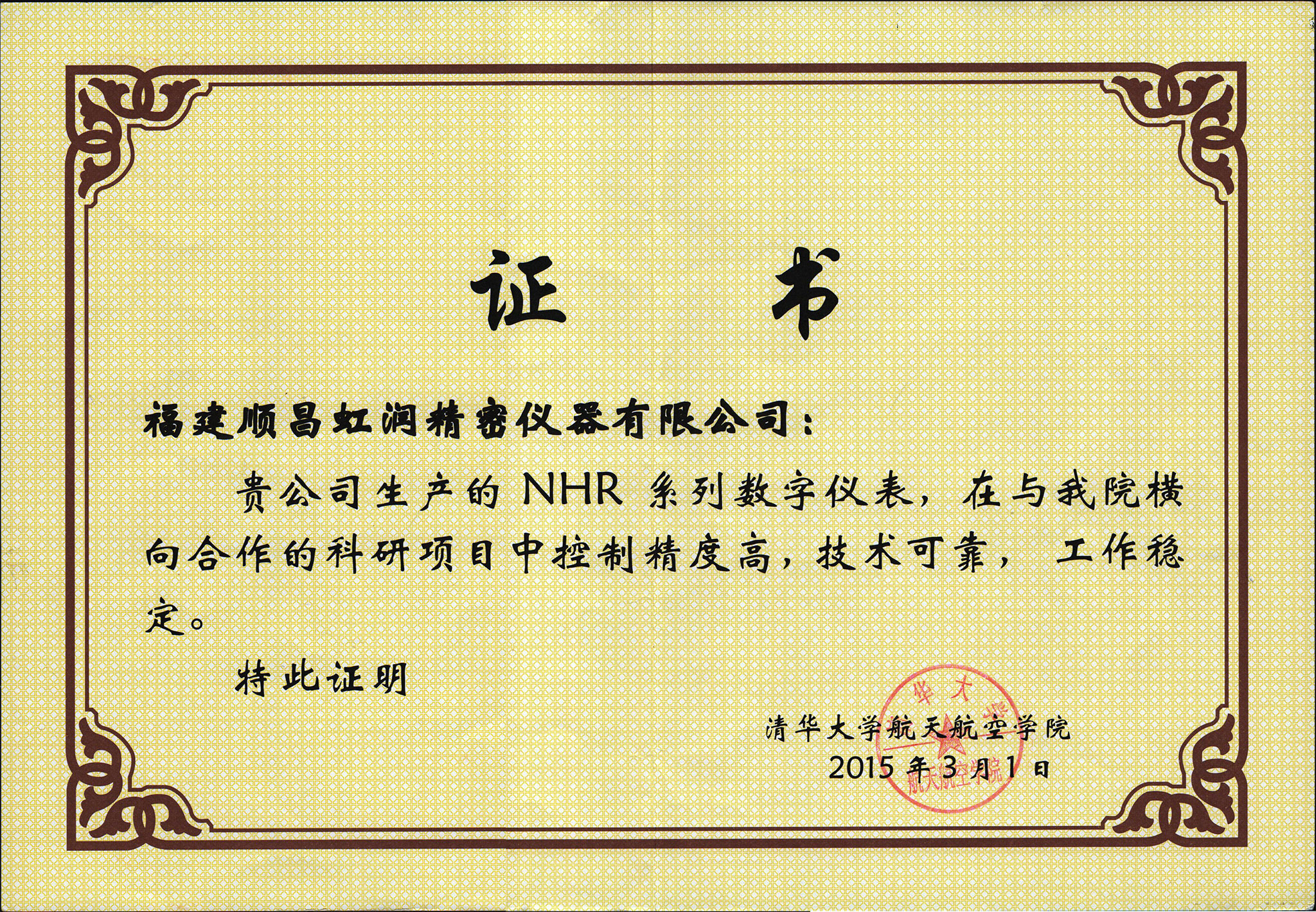 近日,由虹潤(rùn)公司生產(chǎn)的自動(dòng)化顯示控制儀表產(chǎn)品,成功應(yīng)用于清華大學(xué)航空航天學(xué)院橫向合作科研項(xiàng)目,因控制精準(zhǔn),抗干擾性強(qiáng),運(yùn)行穩(wěn)定,受到了清華大學(xué)航空航天學(xué)院科研項(xiàng)目組的廣泛好評(píng),并向虹潤(rùn)公司頒發(fā)了證書(shū)。