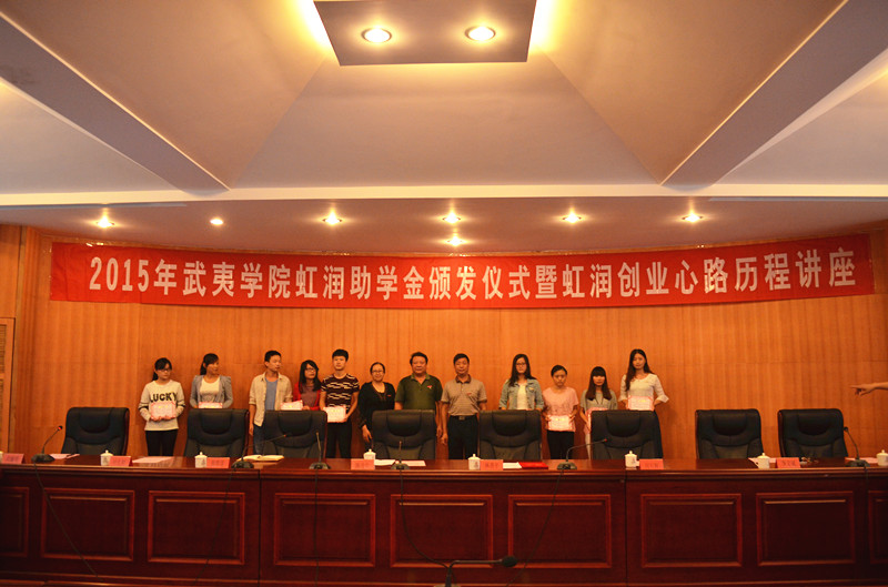 學生處處長廖斌宣讀了《關于公布2014-2015學年“武夷學院虹潤助學金”獲得者名單的通知》。生態(tài)與資源工程學院2013級化學工程與工藝專業(yè)于海星作為學生代表做了發(fā)言,她表達了對林善平先生及學校的感激之情,表示要奮發(fā)圖強,勤奮學習,積極參加各類志愿服務和社會實踐活動,永懷感恩之心,在以后的工作和學習中,奉獻社會。