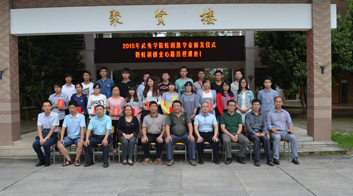 姚進生、林善平等與會領導為獲得虹潤助學金的同學頒發(fā)了證書。林善平用自己的創(chuàng)業(yè)歷程告訴同學們要尊重自我,在暫時的逆境中砥礪品格,磨練意志,用自己的努力不斷增長知識和才干,在以后的人生歷程中選擇更輝煌的道路。