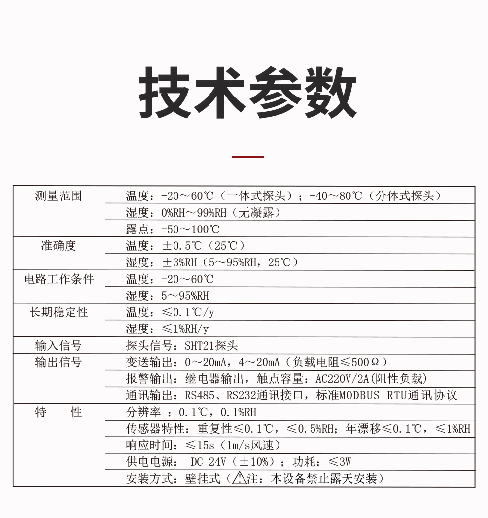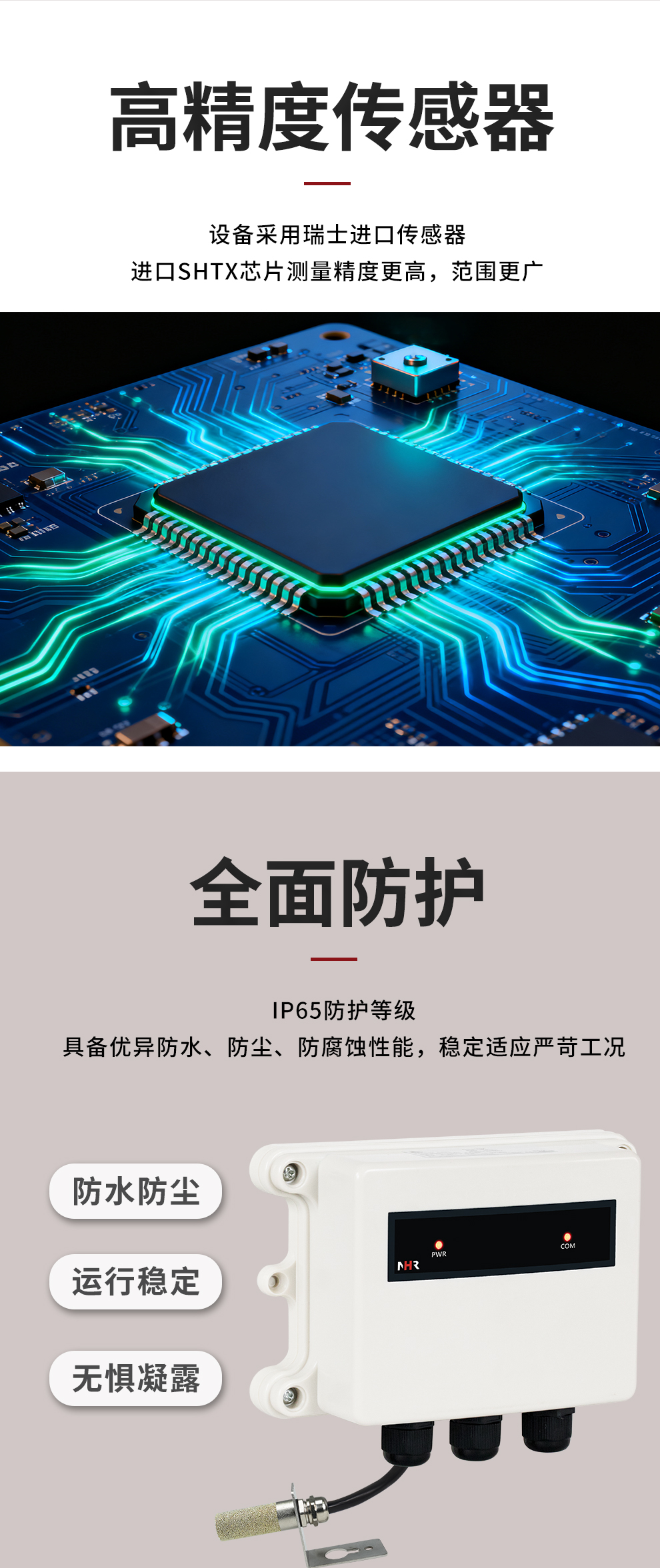 虹潤(rùn)公司是專(zhuān)業(yè)生產(chǎn)環(huán)境監(jiān)測(cè)儀表的國(guó)家專(zhuān)精特新“小巨人”企業(yè)。生產(chǎn)的一體式溫濕度變送器,具有溫度、濕度、露點(diǎn)高精準(zhǔn)的測(cè)量與變送,報(bào)警繼電器輸出,RS485/RS232通訊,IP65防護(hù)等級(jí)等特點(diǎn)。產(chǎn)品獲得一種手持式低功耗溫濕度檢測(cè)儀、大屏幕溫濕度記錄儀等2項(xiàng)國(guó)家發(fā)明專(zhuān)利,主持起草物聯(lián)網(wǎng)智能溫度儀表通用技術(shù)條件、冷鏈溫度記錄儀等2項(xiàng)國(guó)家標(biāo)準(zhǔn),以及通信系統(tǒng)多通道數(shù)據(jù)采集控制終端規(guī)范軍用標(biāo)準(zhǔn),以及現(xiàn)場(chǎng)設(shè)備集成等5項(xiàng)智能制造國(guó)家標(biāo)準(zhǔn),參與國(guó)際5G標(biāo)準(zhǔn)制定,取得溫濕度儀表等3項(xiàng)相關(guān)軟件著作權(quán)。產(chǎn)品廣泛應(yīng)用于工業(yè)現(xiàn)場(chǎng)、農(nóng)業(yè)大棚、倉(cāng)儲(chǔ)物流、地下管廊、養(yǎng)殖孵化、配電機(jī)房等諸多領(lǐng)域。