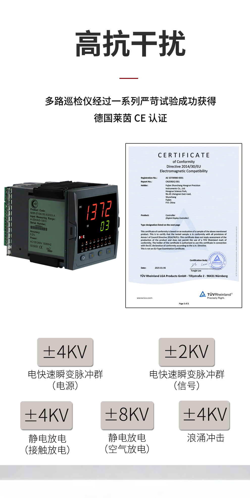 虹潤公司是專業(yè)生產(chǎn)多路溫度巡檢儀的國家專精特新“小巨人”企業(yè),生產(chǎn)的多回路測量顯示控制儀,具有8路/16路測量通道,全切換信號輸入,多種輸出類型,高抗干擾,RS485/RS232通訊等特點。產(chǎn)品獲得巡回檢測顯示方法及裝置、儀表殼體等2項國家發(fā)明專利,主持起草工業(yè)過程控制系統(tǒng)用模擬輸入兩位或多位輸出儀表、物聯(lián)網(wǎng)智能溫度儀表通用技術條件等2項國家標準,以及通信系統(tǒng)多通道數(shù)據(jù)采集控制終端規(guī)范軍用標準,參與國際5G標準制定,取得多回路測量顯示控制儀等3項相關軟件著作權(quán)。產(chǎn)品廣泛應用于電力、石化、冶金、制藥、水處理、機械配套等各種工業(yè)現(xiàn)場。