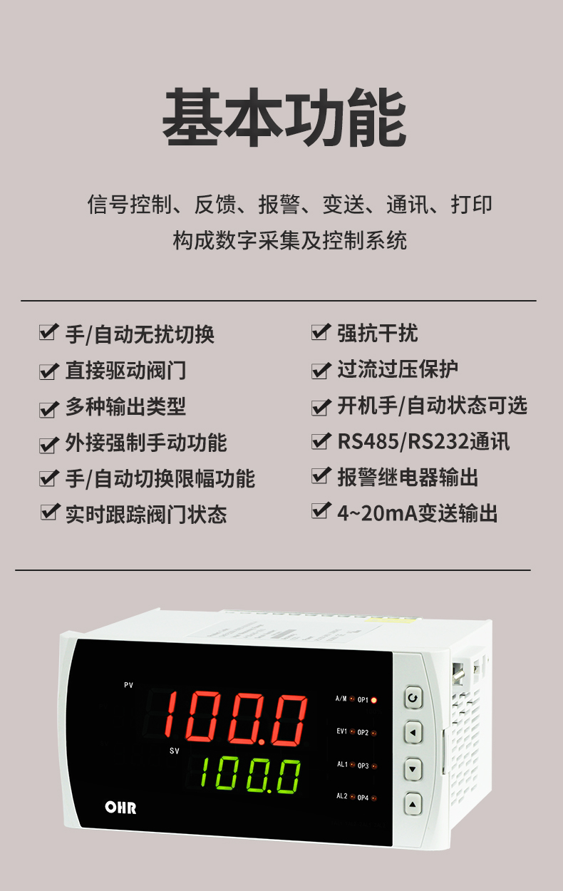 虹潤公司是專業(yè)生產(chǎn)智能手操器的國家專精特新“小巨人”企業(yè),生產(chǎn)的手動操作器,具有手自動無擾切換,直接調(diào)節(jié)閥門,多種輸出類型,外接強制手動功能,高抗干擾等特點。產(chǎn)品獲得閥門自動手動無擾動操作控制方法及裝置、模糊PID控制儀及控制方法、移相觸發(fā)控制器等3項國家標(biāo)準(zhǔn),主持起草工業(yè)過程控制系統(tǒng)用模擬輸入兩位或多位輸出儀表、流程工業(yè)中電氣/儀表和控制系統(tǒng)的試車等2項國家標(biāo)準(zhǔn),以及通信系統(tǒng)多通道數(shù)據(jù)采集控制終端規(guī)范軍用標(biāo)準(zhǔn),參與國際5G標(biāo)準(zhǔn)制定,取得手動操作器等3項相關(guān)軟件著作權(quán)。產(chǎn)品廣泛應(yīng)用于電力、石化、冶金、化工、造紙、食品、輕工、制藥、熱處理、水處理、機械配套等各種工業(yè)現(xiàn)場。