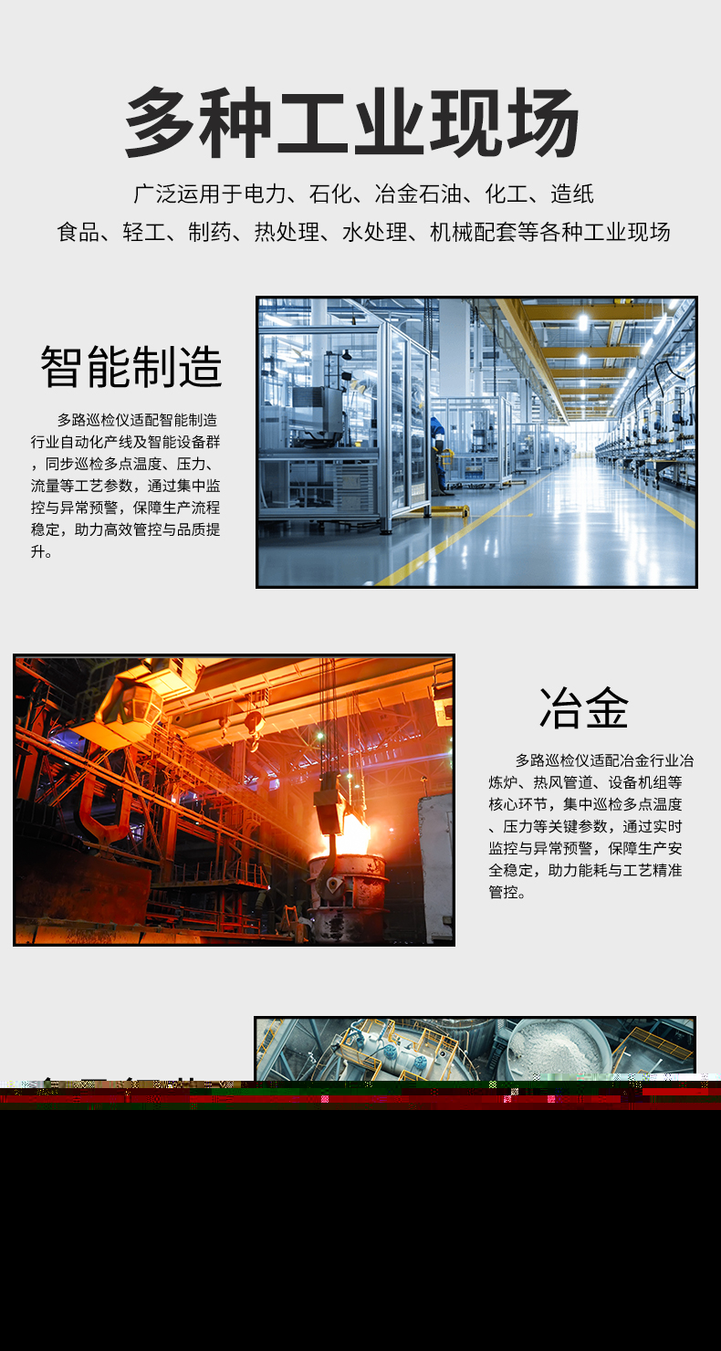 虹潤公司是專業(yè)生產(chǎn)多路溫度巡檢儀的國家專精特新“小巨人”企業(yè),生產(chǎn)的增強型多路巡檢儀,具有8路/16路測量通道,全切換信號輸入,多種輸出類型,高抗干擾,RS485/RS232通訊等特點。產(chǎn)品獲得巡回檢測顯示方法及裝置、儀表殼體等2項國家發(fā)明專利,主持起草工業(yè)過程控制系統(tǒng)用模擬輸入兩位或多位輸出儀表、物聯(lián)網(wǎng)智能溫度儀表通用技術(shù)條件等2項國家標(biāo)準(zhǔn),以及通信系統(tǒng)多通道數(shù)據(jù)采集控制終端規(guī)范軍用標(biāo)準(zhǔn),參與國際5G標(biāo)準(zhǔn)制定,取得多回路測量顯示控制儀等3項相關(guān)軟件著作權(quán)。產(chǎn)品廣泛應(yīng)用于電力、石化、冶金、制藥、水處理、機械配套等各種工業(yè)現(xiàn)場。