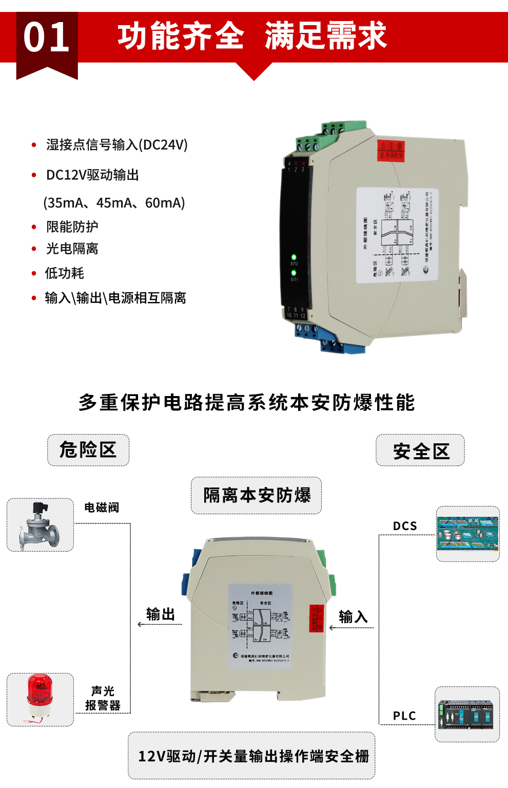 虹潤公司是專業(yè)生產(chǎn)隔離器的國家專精特新“小巨人”企業(yè)。生產(chǎn)的隔離式操作端安全柵涵蓋信號電壓輸入、電流輸入、開關(guān)量輸入等多種產(chǎn)品類型。產(chǎn)品獲得具備減震抗干擾能力的溫度變送器、信號隔離器、一種二端子模塊、無源信號隔離器等4項國家發(fā)明專利,主持起草物聯(lián)網(wǎng)智能溫度儀表、現(xiàn)場設(shè)備工具(FDT)接口規(guī)范、工業(yè)過程測量和控制系統(tǒng)用溫度變送器等3項國家標(biāo)準(zhǔn),以及通信系統(tǒng)多通道數(shù)據(jù)采集控制終端規(guī)范軍用標(biāo)準(zhǔn)。參與國際5G標(biāo)準(zhǔn)制定,取得智能隔離式安全柵等4項相關(guān)軟件著作權(quán)。產(chǎn)品廣泛應(yīng)用于石油、電力、化工,冶金、智能制造、污水處理等諸多行業(yè)。