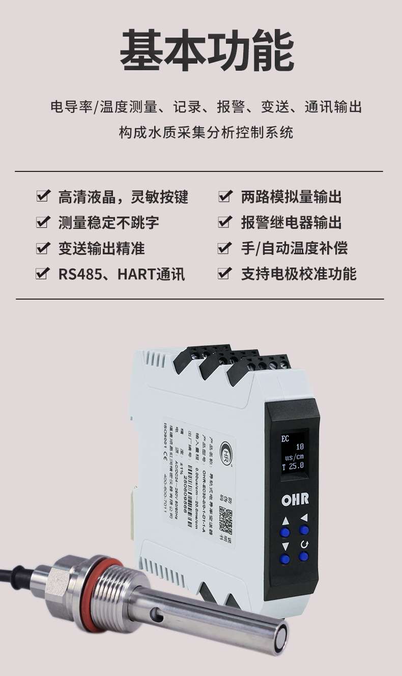 虹潤公司是專業(yè)生產(chǎn)水質(zhì)分析儀的國家專精特新“小巨人”企業(yè)。生產(chǎn)的導(dǎo)軌式電導(dǎo)率變送器,具有測量穩(wěn)定不跳字,液晶顯示按鍵操控,變送輸出精準,寬范圍電源供電,RS485或HART通訊等特點。產(chǎn)品獲得一種信號發(fā)生裝置、智能化控制器等2項國家發(fā)明專利;主持起草現(xiàn)場設(shè)備集成等5項智能制造國家標準,以及現(xiàn)場設(shè)備工具(FDT)接口規(guī)范、工業(yè)過程控制系統(tǒng)用模擬輸入兩位或多位輸出儀表、過程分析技術(shù)系統(tǒng)等3項國家標準;參與國際5G標準制定,取得導(dǎo)軌電導(dǎo)率變送器等3項相關(guān)軟件著作權(quán)。產(chǎn)品廣泛應(yīng)用于實驗室、水處理、環(huán)境監(jiān)測、制藥、食品、農(nóng)業(yè)、工業(yè)流程控制等諸多領(lǐng)域。