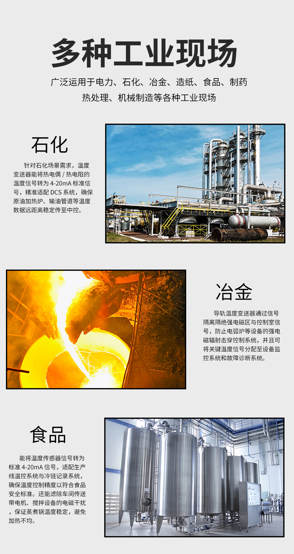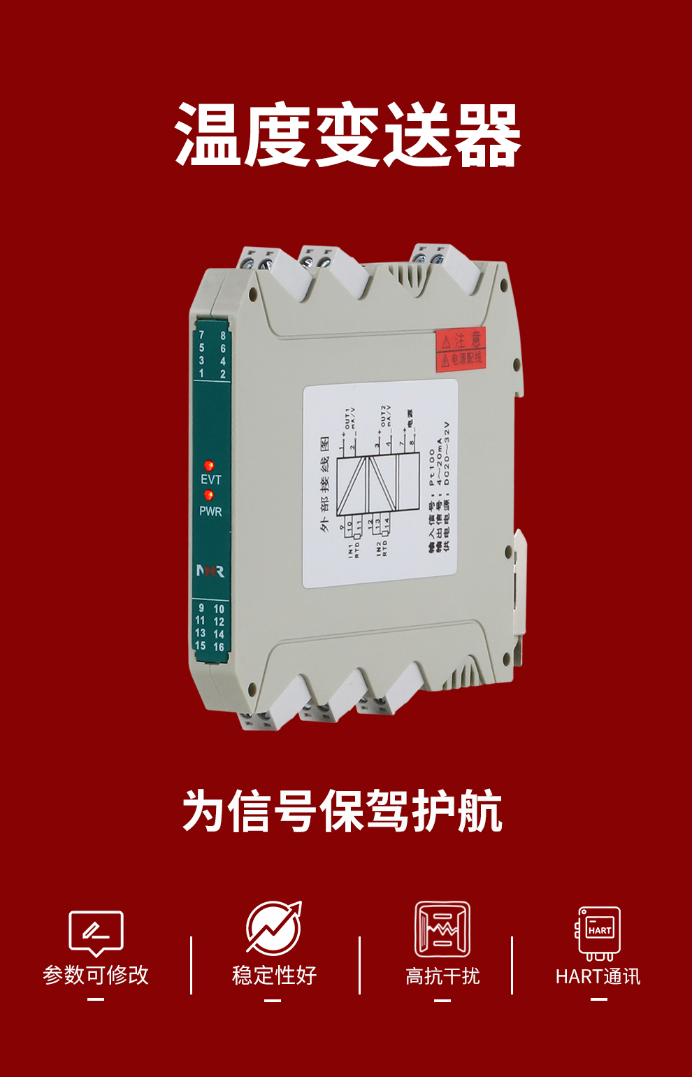 虹潤(rùn)公司是專(zhuān)業(yè)生產(chǎn)溫度變送器的國(guó)家專(zhuān)精特新“小巨人”企業(yè)。生產(chǎn)的溫度變送器,具有采用磁隔離技術(shù),配套編程器可修改參數(shù),抗干擾能力強(qiáng),穩(wěn)定性好,帶RS485或HART通訊等特點(diǎn)。該產(chǎn)品不僅通過(guò)HART基金會(huì)認(rèn)證、德國(guó)萊茵 CE 認(rèn)證與 SIL 功能安全認(rèn)證,還獲得具備減震抗干擾能力的溫度變送器、信號(hào)隔離器、一種二端子模塊、無(wú)源信號(hào)隔離器等4項(xiàng)國(guó)家發(fā)明專(zhuān)利,主持起草物聯(lián)網(wǎng)智能溫度儀表、現(xiàn)場(chǎng)設(shè)備工具(FDT)接口規(guī)范、工業(yè)過(guò)程測(cè)量和控制系統(tǒng)用溫度變送器等3項(xiàng)國(guó)家標(biāo)準(zhǔn),以及通信系統(tǒng)多通道數(shù)據(jù)采集控制終端規(guī)范軍用標(biāo)準(zhǔn),參與國(guó)際5G標(biāo)準(zhǔn)制定,取得溫度變送器等5項(xiàng)相關(guān)軟件著作權(quán)。產(chǎn)品廣泛應(yīng)用于石油、電力、化工,冶金、制藥、紡織、橡膠制造等工業(yè)領(lǐng)域現(xiàn)場(chǎng)自動(dòng)化測(cè)溫過(guò)程。