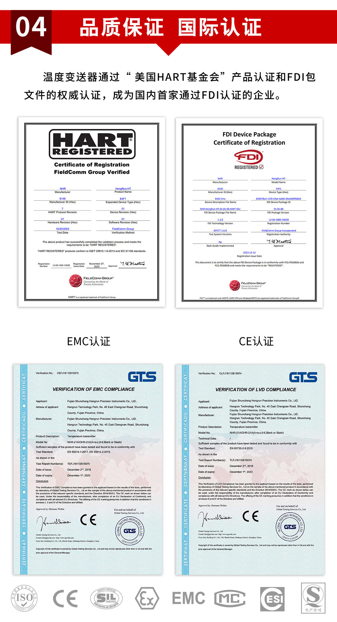 虹潤公司是專業(yè)生產(chǎn)溫度變送器的國家專精特新“小巨人”企業(yè)。生產(chǎn)的LCD 隔離智能溫度變送器,具有熱電阻熱偶信號全切換輸入,精度高,穩(wěn)定性好,輸入輸出隔離,帶HART或RS485通訊等特點。該產(chǎn)品不僅通過HART基金會認證、德國萊茵 CE 認證與 SIL 功能安全認證,還獲得具備減震抗干擾能力的溫度變送器、信號隔離器、一種二端子模塊、無源信號隔離器等4項國家發(fā)明專利,主持起草物聯(lián)網(wǎng)智能溫度儀表、現(xiàn)場設備工具(FDT)接口規(guī)范、工業(yè)過程測量和控制系統(tǒng)用溫度變送器等3項國家標準,以及通信系統(tǒng)多通道數(shù)據(jù)采集控制終端規(guī)范軍用標準,參與國際5G標準制定,取得高精度溫度變送器等5項相關(guān)軟件著作權(quán)。產(chǎn)品廣泛應用于石油、化工、電力、冶金、制藥、食品、水處理等各種工業(yè)領域。